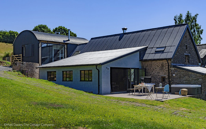 Fforest barn fuses a 17th century oak beamed stone barn with an eco-friendly Dutch barn giving the feel of ancient Wales with all mod cons, total privacy and stunning views and walks in every direction.